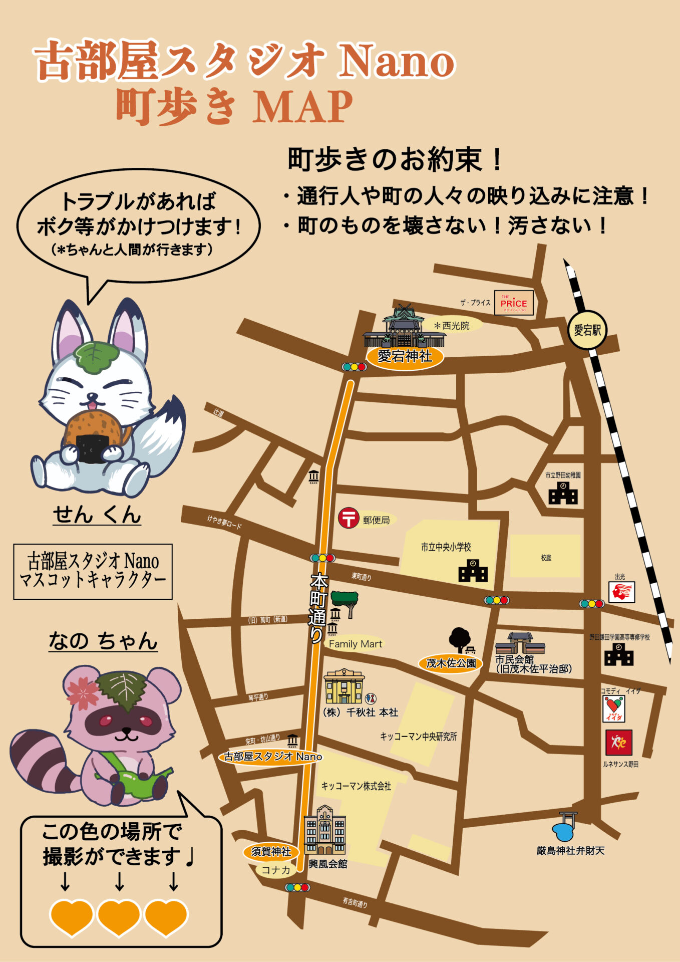 ※町歩きの際には当スタジオのご利用中の目印をお渡ししてのご利用となりますので、必ずスタッフにご一報くださいませ。